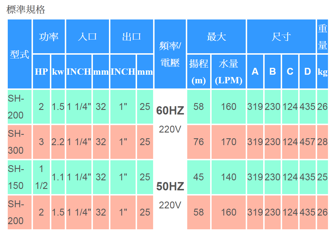 採用不鏽鋼泵浦殼、不鏽鋼葉輪,聲音小、體積小且吸水揚水性能特佳。